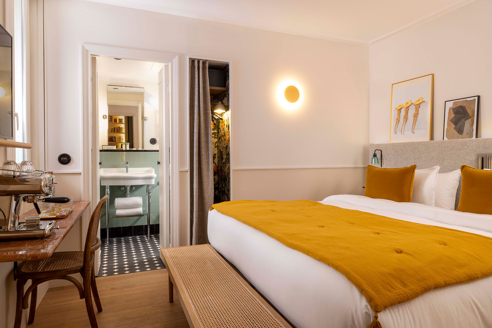 Pensée comme un véritable pied-à-terre parisien avec ses moulures, sa cheminée, sa baignoire et son accès privatif à notre cour-jardin arborée, La Loge Verte Suite va vite vous donner envie d'y emménager...